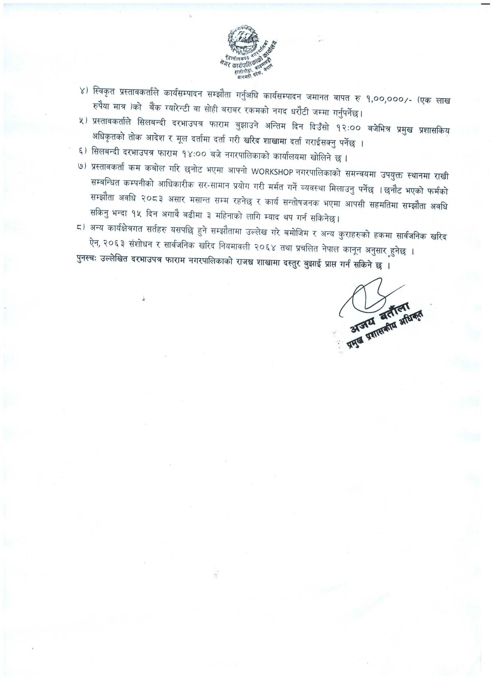 चार पांग्रे सवारी मर्मत सम्भार कार्य शिलबन्दी दरभाउपत्र आह्वानको सूचना ।