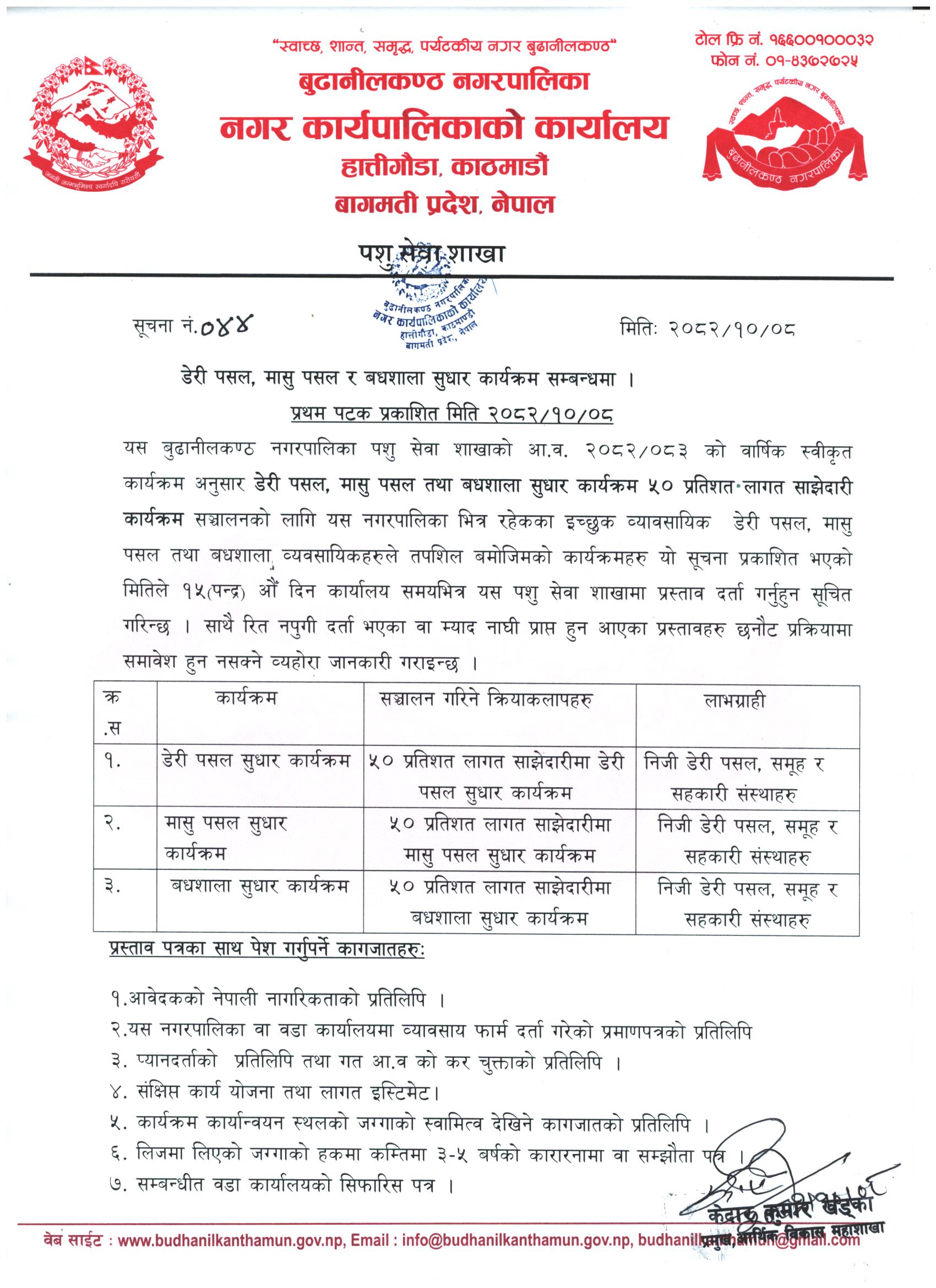 डेरी पसल, मासु पसल र बधशाला सुधार कार्यक्रम सम्बन्धमा ।