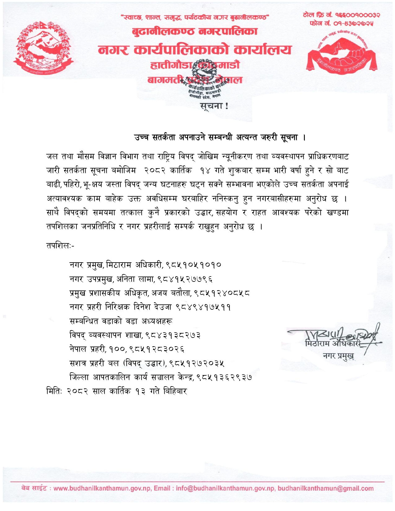 सतर्कता अपनाउने सम्बन्धी सूचना