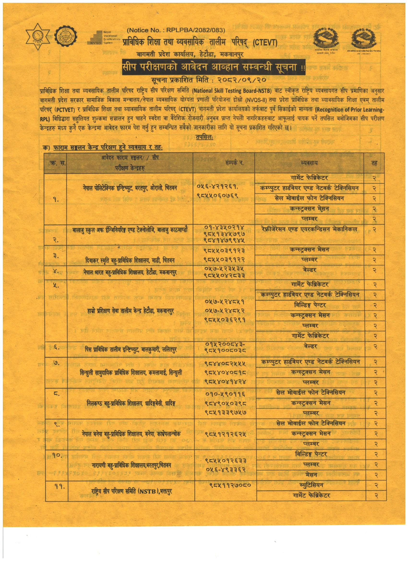 सिप परिक्षणको लागि आवदेन आव्हान सम्बन्धी सूचना !