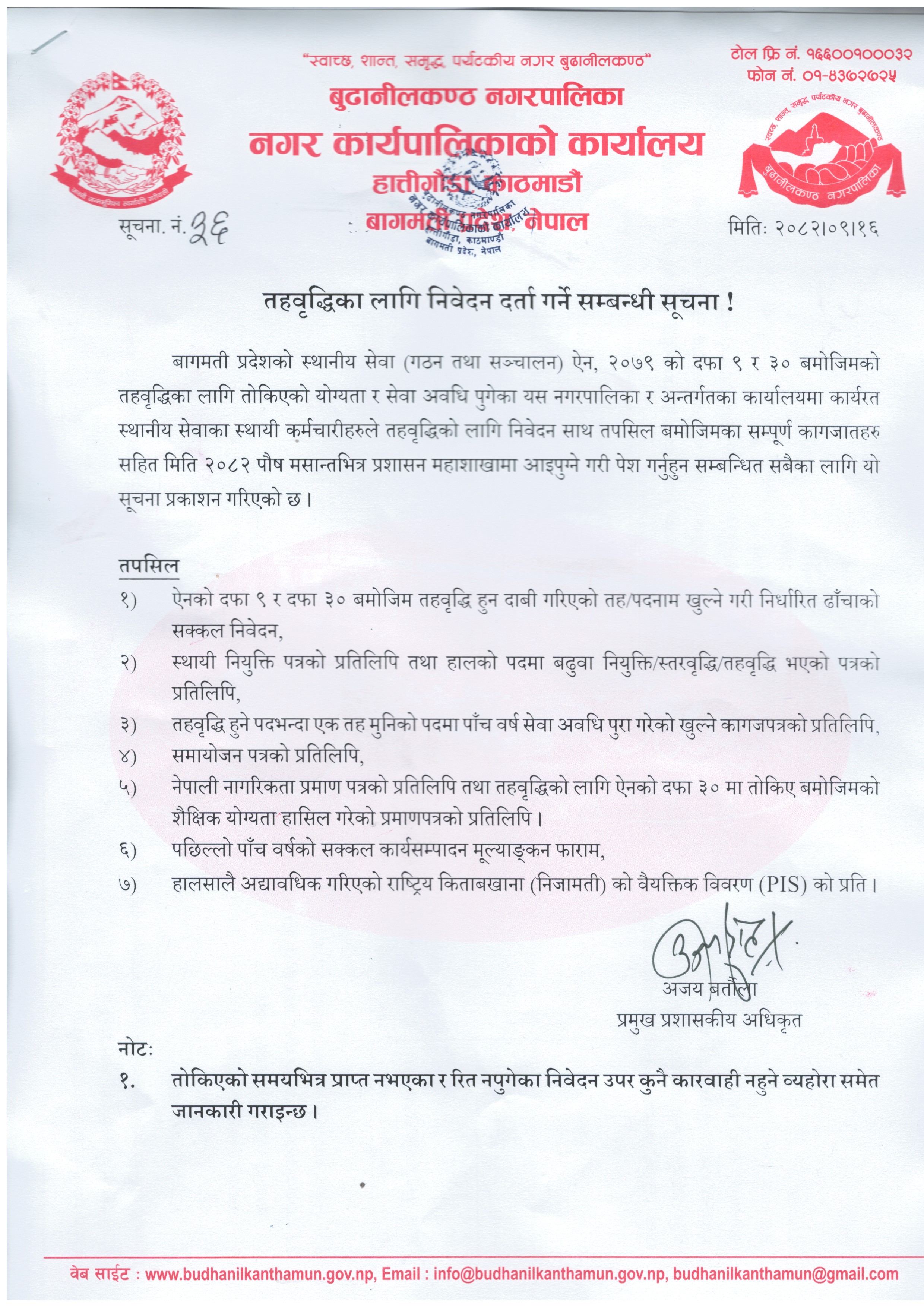 तहवृद्धिका लागि निवेदन पेश गर्ने सम्बन्धी सूचना