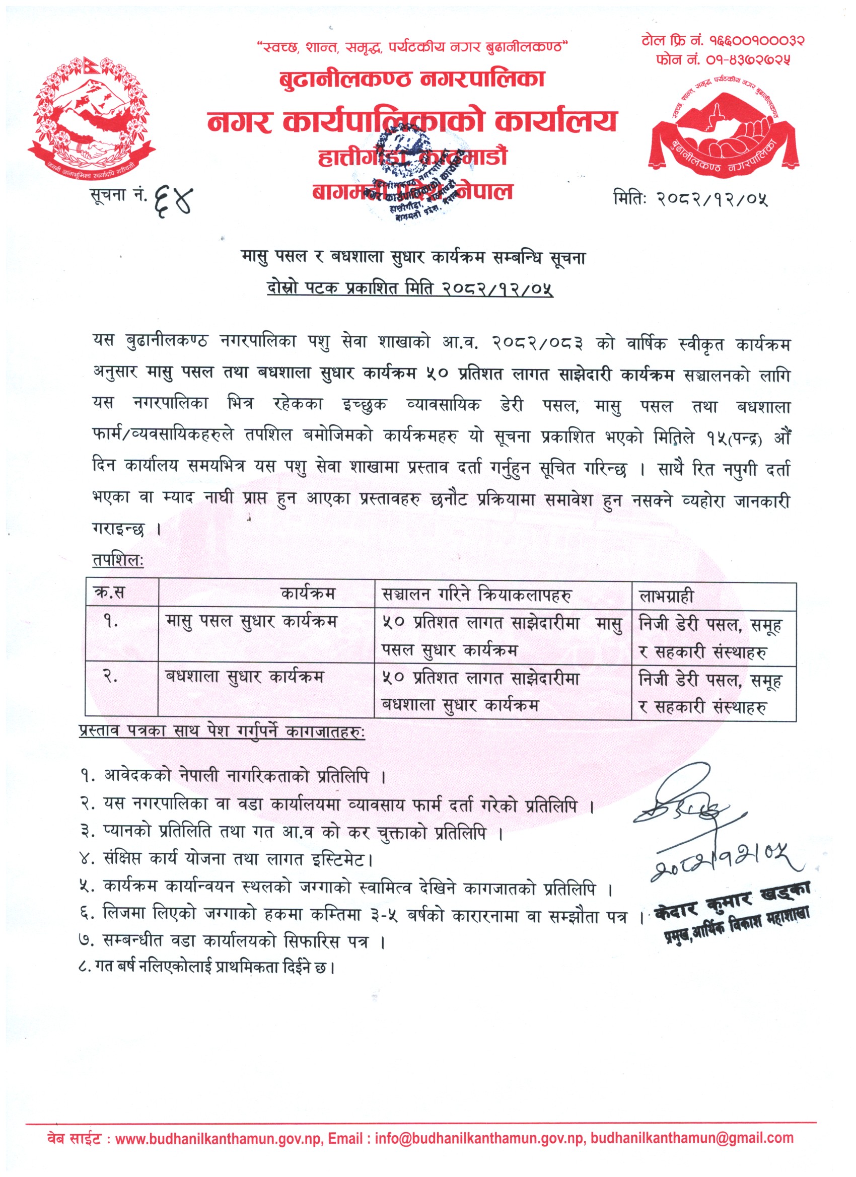 मासु पसल र बधशाला सुधार कार्यक्रम सम्बन्धी सूचना !