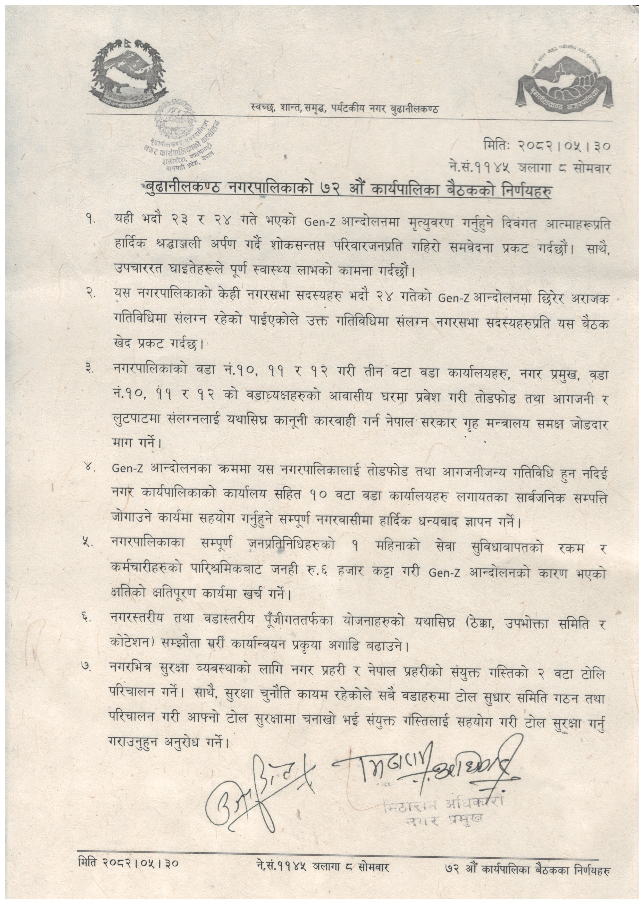 ७२ औँ कार्यपालिका बैठकको निर्णय