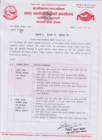 आ.व. २०८२/०८३ का लागि कृषि विकास शाखा अन्तर्गत अनुदान कार्यक्रम सञ्चालन सम्बन्धी सूचना