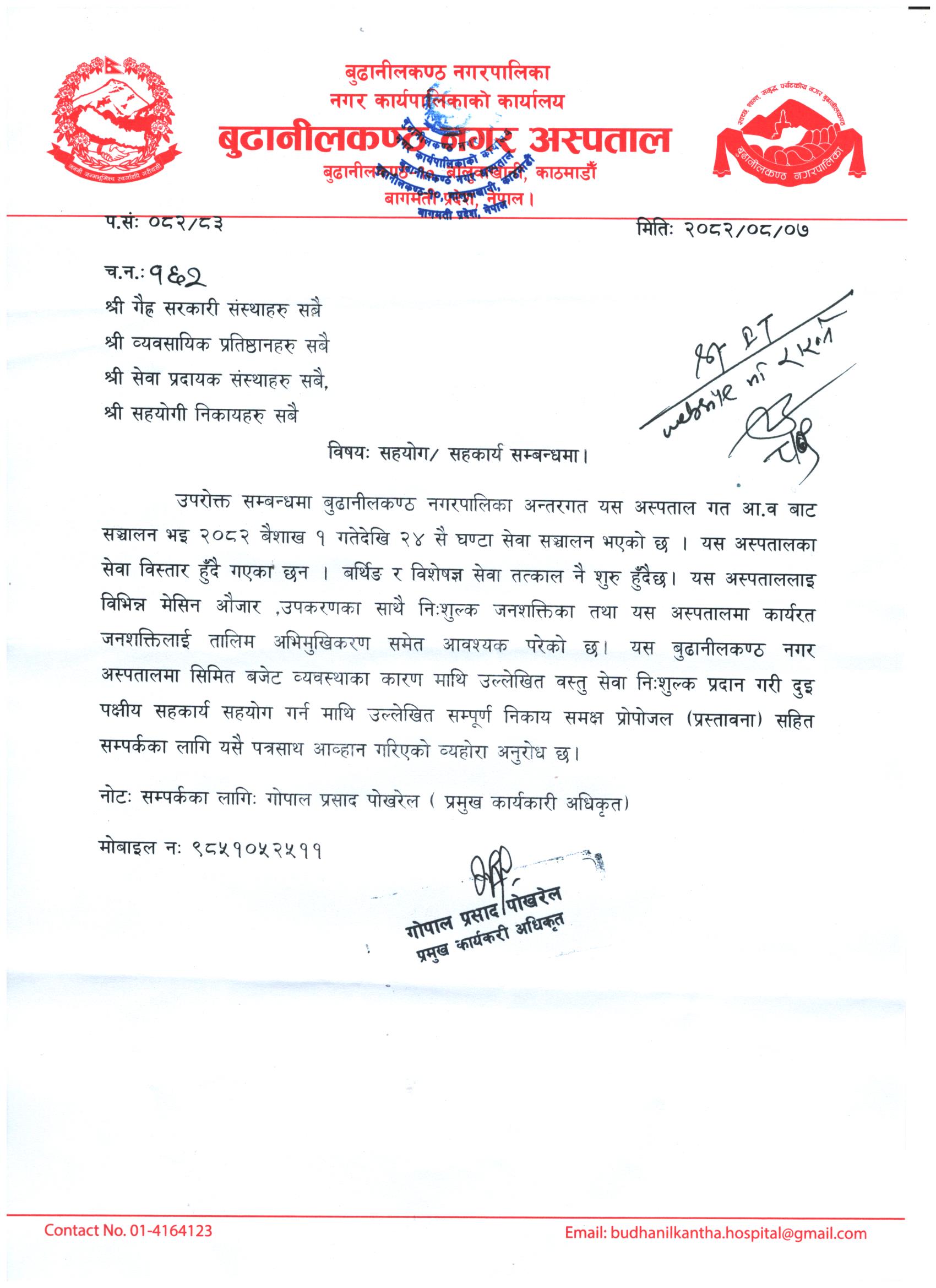 सहयोग तथा सहकार्य सम्बन्धमा - बुढानीलकण्ठ नगर अस्पताल