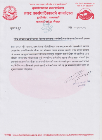 गरिब परिवार तथा परिचयपत्र वितरण कार्यक्रम अन्तर्गतको गुनासो सुनुवाई सम्बन्धी सूचना।