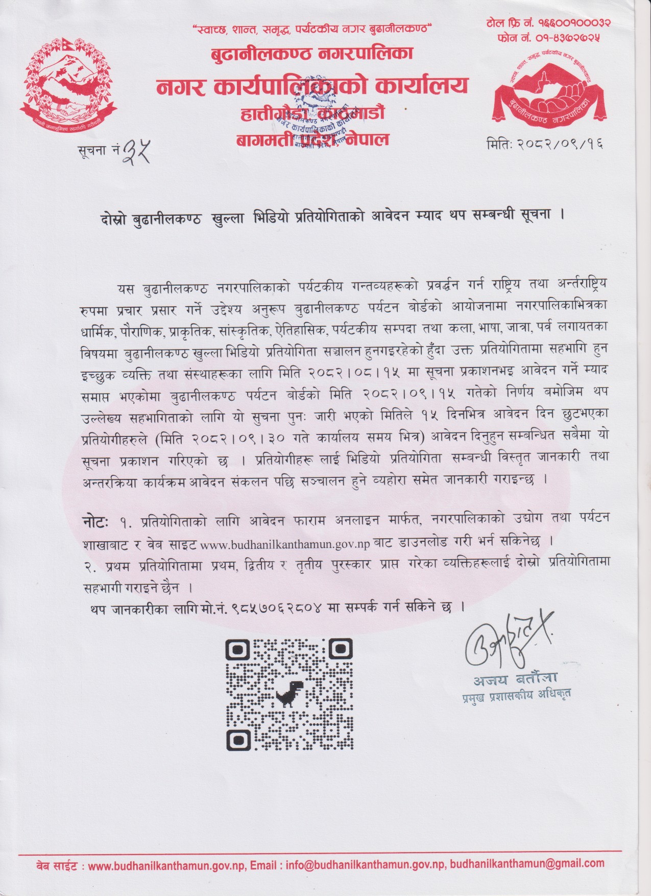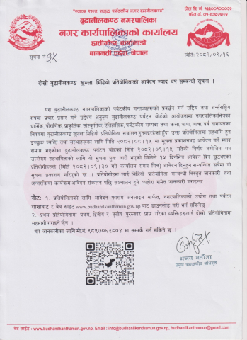 दोस्रो बुढानीलकण्ठ खुल्ला भिडियो प्रतियोगिताको आवेदन म्याद थप सम्बन्धी सूचना ।