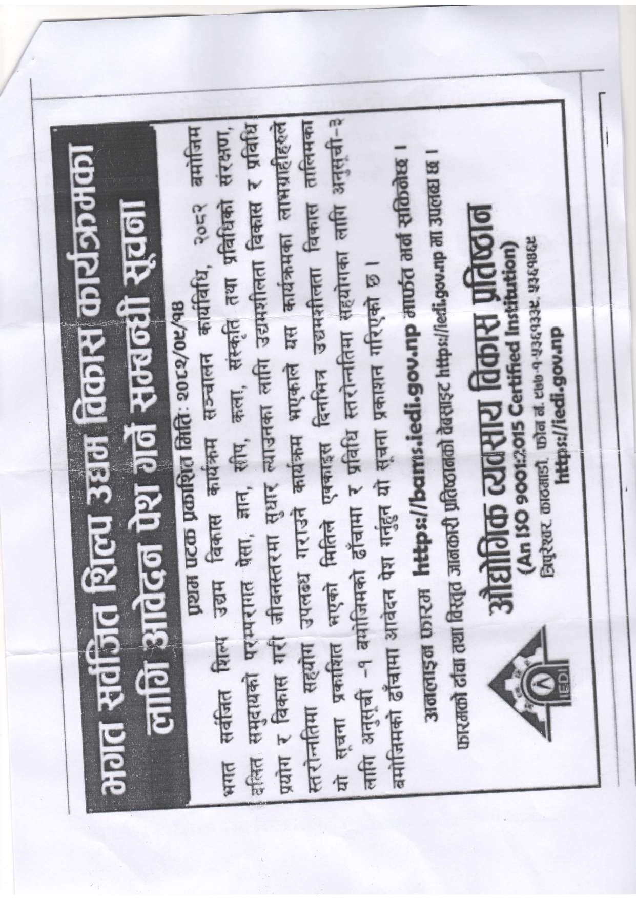 भगत सर्वजित शिल्प उद्यम विकास कार्यक्रमका लागि आवेदन पेश गर्ने सम्बन्धी सूचना